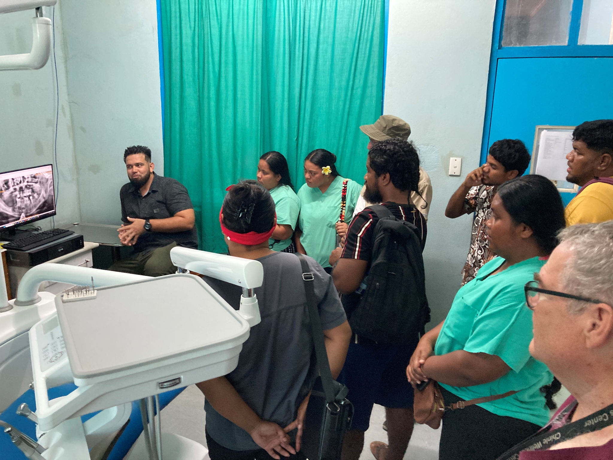 Students learn to read an X-ray at the Kiribati dental clinic. October 2025.© 2025 by Intellectual Reserve, Inc. All rights reserved.This training covers anatomy, medical emergencies, public health, and oral pathology, among other topics. As part of this training, students are also assigned projects to increase community outreach.